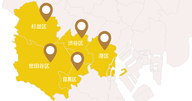 日本ペットシッターサービス渋谷店の対応エリアは、渋谷区・港区・目黒区・世田谷区・杉並区を中心としております。